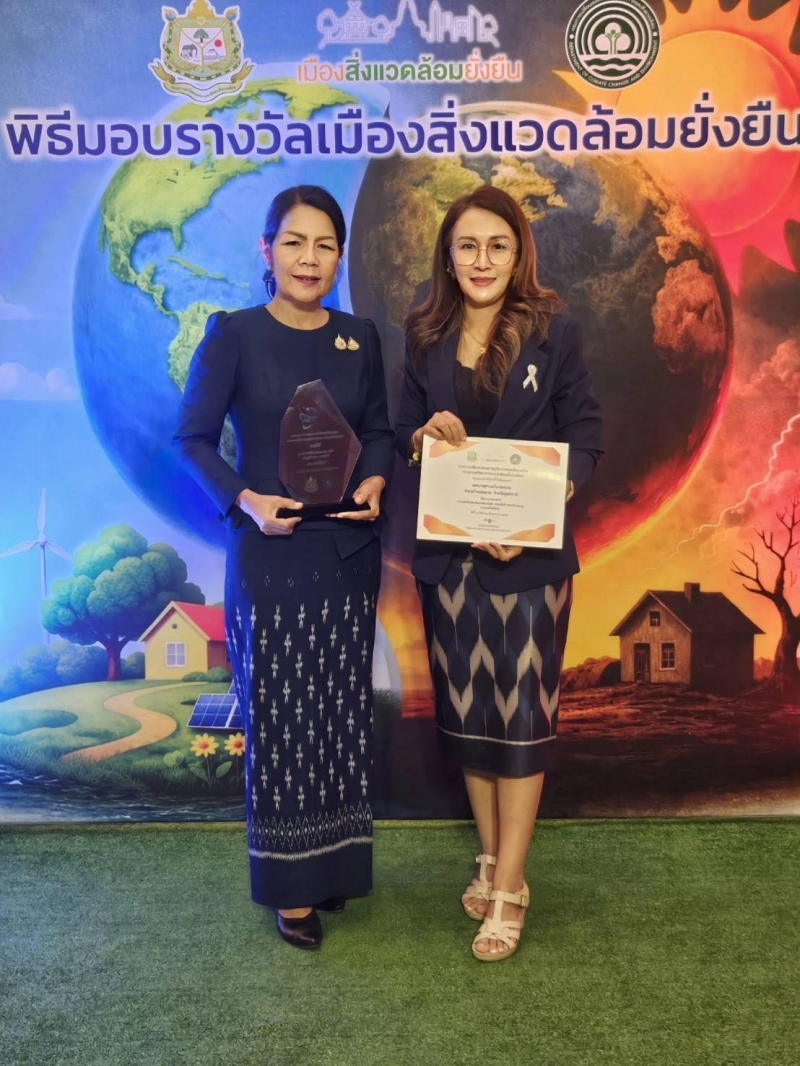 นางวิชญ์สุภา ภูมิภักดิ์ นายกเทศมนตรีตำบลโนนสะอาดพร้อมด้วยนางรจนา พลสงคราม ผู้อำนวยการกองสาธารณสุขฯ ได้เข้าร่วมพิธีรับมอบโล่รางวัล เมืองสิ่งแวดล้อมยั่งยืน ระดับพื้นที่ ประจำปี 2568 ประเภทพื้นที่ทั่วไป