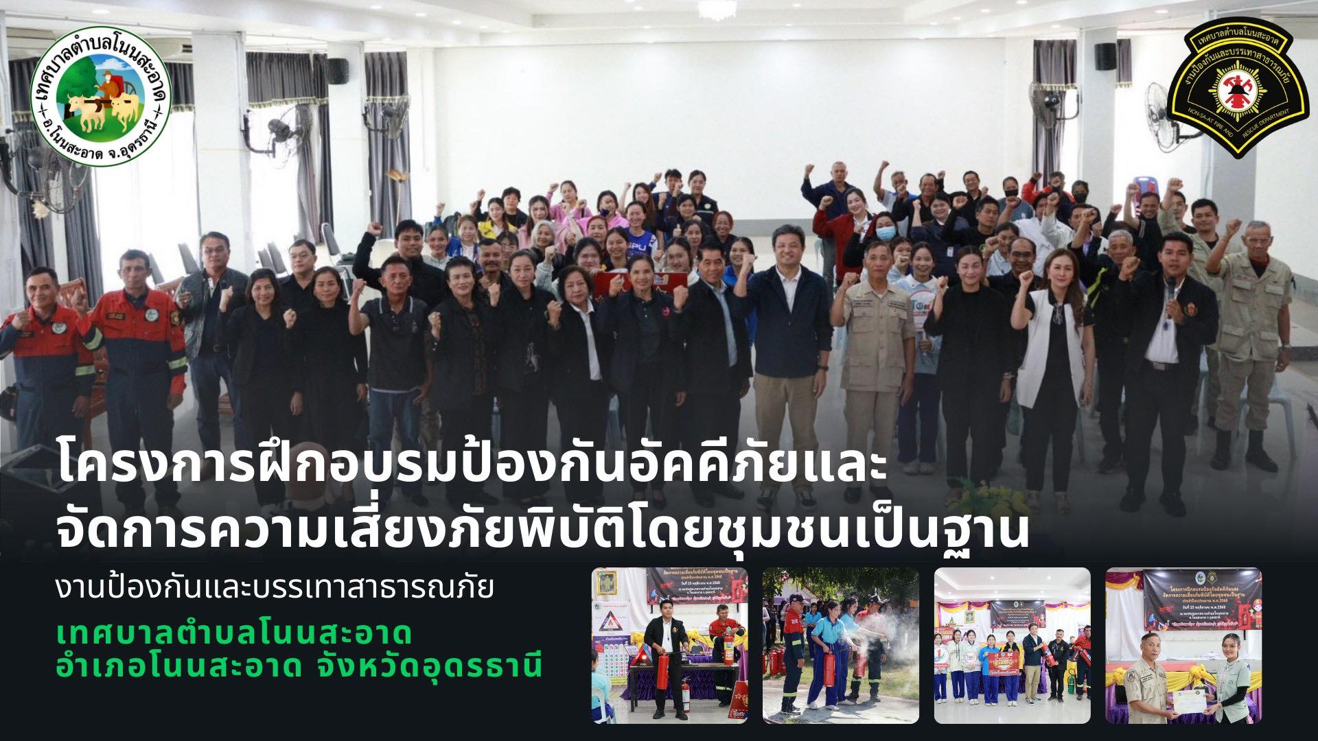 นางวิชญ์สุภา ภูมิภักดิ์ นายกเทศมนตรีตำบลโนนสะอาด มอบหมายให้ นายสถาพร งามศิริสมสกุล รองนายกเทศมนตรี เป็นประธานในพิธีเปิดโครงการฝึกอบรมป้องกันและจัดการความเสี่ยงโดยชุมชนเป็นฐาน ณ หอประชุมเทศบาลตำบลโนนสะอาด โดยมีนายอภิสิทธิ์ ผ่านชมภู ปลัดเทศบาลเป็นผู้กล่าวรายงาน พร้อมทั้งหัวหน้าส่วนราชการ พนักงาน และมีผู้เข้าร่วมอบรมจำนวน 60 คน โดยมีวัตถุประสงค์ดังนี้