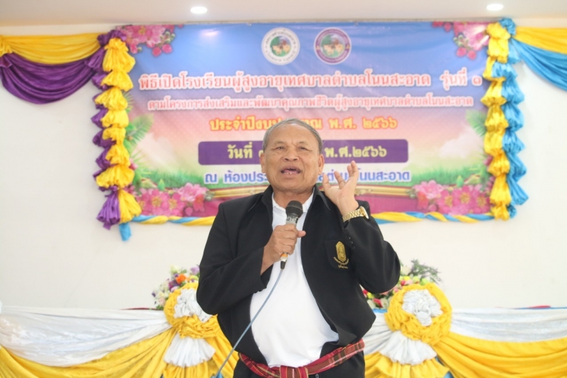 กองสวัสดิการสังคม เทศบาลตำบลโนนสะอาด จัดโครงการส่งเสริมเเละพัฒนาคุณภาพชีวิตผู้สูงอายุประจำปีงบประมาณ พ.ศ. 2566 รุ่นที่ 1 (โรงเรียนเรียนผู้สูงอายุเทศบาลตำบลโนนสะอาด) โดยมีนายชวิศ ป้องขันธ์ นายอำเภอโนนสะอาด เป็นประธานในพิธี