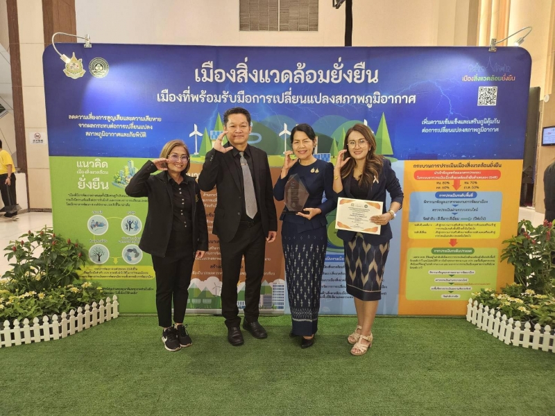 นางวิชญ์สุภา ภูมิภักดิ์ นายกเทศมนตรีตำบลโนนสะอาดพร้อมด้วยนางรจนา พลสงคราม ผู้อำนวยการกองสาธารณสุขฯ ได้เข้าร่วมพิธีรับมอบโล่รางวัล เมืองสิ่งแวดล้อมยั่งยืน ระดับพื้นที่ ประจำปี 2568 ประเภทพื้นที่ทั่วไป